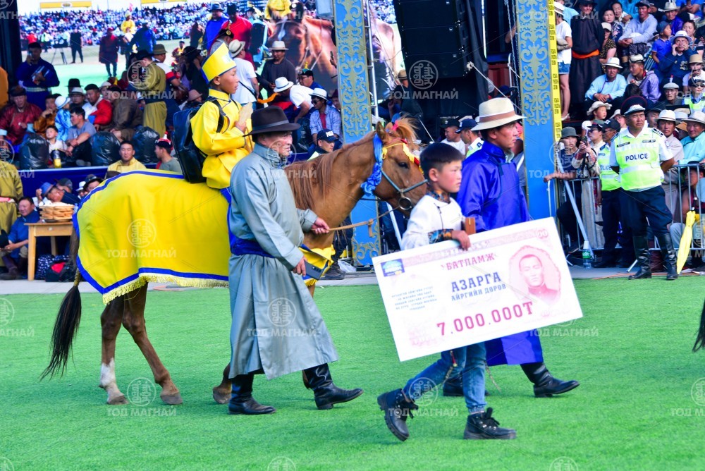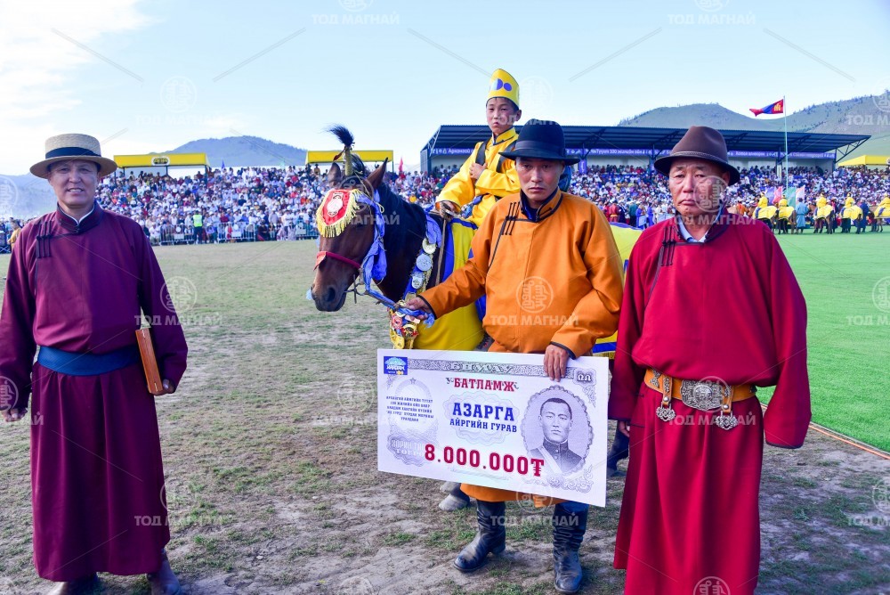 1.Увс аймгийн Зүүнговь сумын уугуул, нийслэлийн Алдарт уяач Далайн Батбаярын Түмт хээр. Эцэг нь Бонибо дуудлагатай араб хээр халзан азарга. Эх нь Тод манлай уяач Ц.Аюуш агсаны Том хээр азарганы төлийн төл сартай хүрэн гүү. Соёолондоо 2022 онд Дархан-Уул аймгийн 60 жилийн ойд аман хүзүүнд хурдалж, Увс аймгийн Өндөрхангай суманд болсон Ханхөхийн тахилгад түрүүлсэн. 2023 онд Архангай аймгийн 100 жилийн ой болоод Хантайшир уулын аймаг байгуулагдсаны 100 жилийн ойд тус тус түрүүлсэн. Уяа сойлгыг аймгийн Алдарт уяач Энхтайваны Энх-Амгалан. Уралдаанч 11 настай Энх-Амгалангийн Бүрэнтөгс.