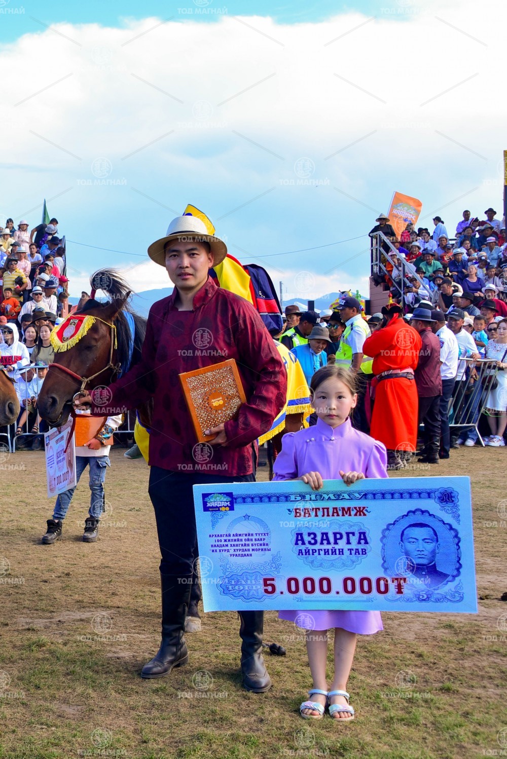 5. Хөвсгөл аймгийн Рашаант сумын уугуул А.Билигүдэйн Чандмань хээр. Эх нь Тогмидын Төрбатын улсад долоолсон хүрэн азарганы төл сартай хүрэн. Эцэг нь Тандер банч дуудлагатай Англи хээр халзан азарга. 2022 онд “Хотгойдын хурд” уралдаанд айргийн гуравт хурдалж байсан. Уяа сойлгыг аймгийн Алдарт уяач Адуучийн Нямбаатар. Уралдаанч Хөвсгөл аймгийн Рашаант сумын харьяат С.Содномдорж.