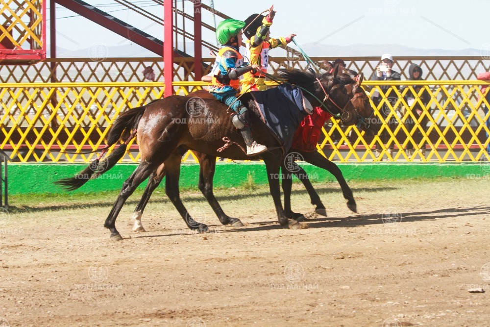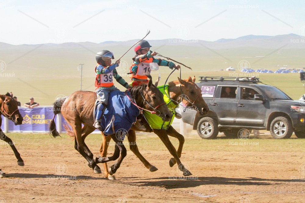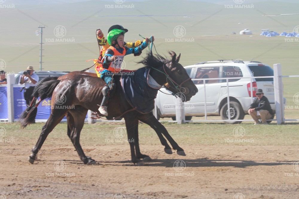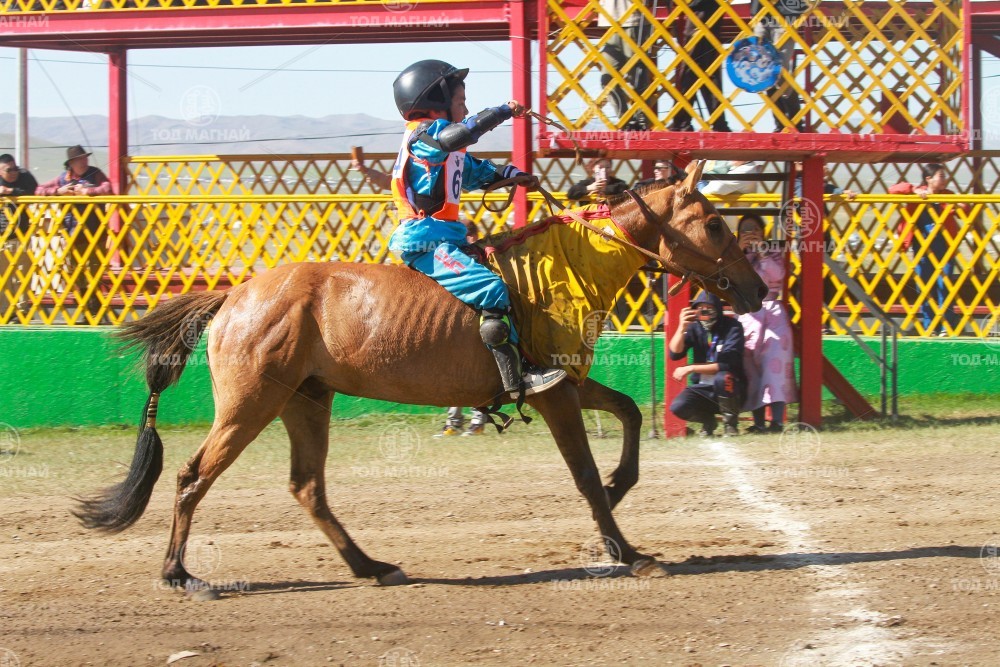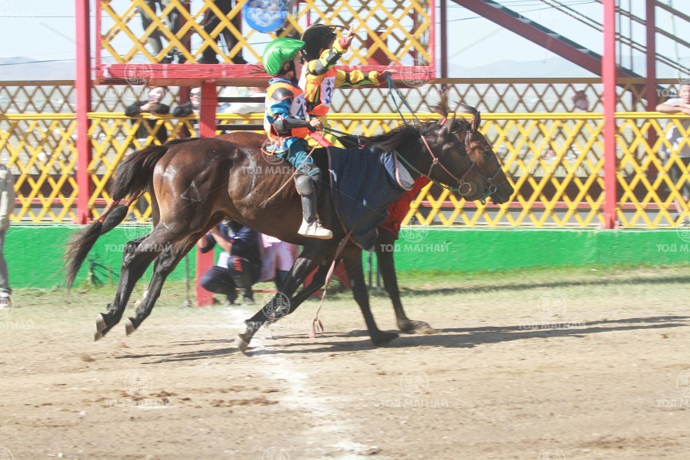 9.Говь-Алтай аймгийн Шарга сумын уугуул Тод манлай уяач Хадбаасангийн Бат-Эрдэнийн хээр. Уяа сойлгыг Бат-Өлзийн Оргил. Уралдаанч 11 настай Доржчулууны Отгоннасан.