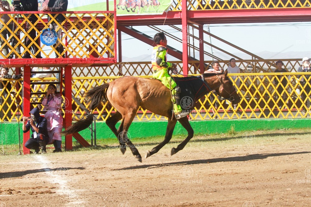 10. Ховд аймгийн Мянгад сумын уугуул МУ-ын Манлай уяач Загджавын Мэндсайханы зээрд. Уяа сойлгыг МУ-ын Гавьяат малчин, Тод манлай уяач Дашдоржийн Мөнхбат. Уралдаанч 14 настай Энхболдын Золмандах.