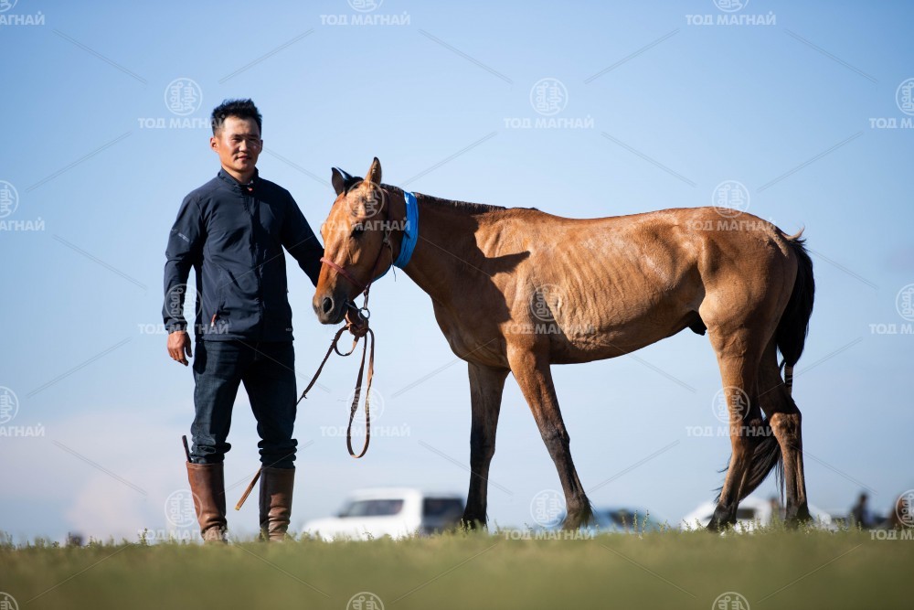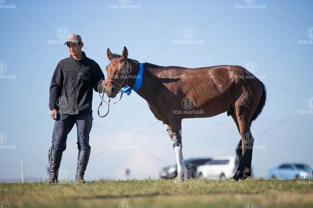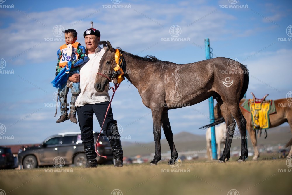 2.Өмнөговь аймгийн Булган сумын уугуул Тод манлай уяач Намдагийн Хүрлээгийн бор. Уяа сойлгыг Б.Ганбаяр. Уралдаанч 11 настай Батхүүгийн Бадар-Ууган.