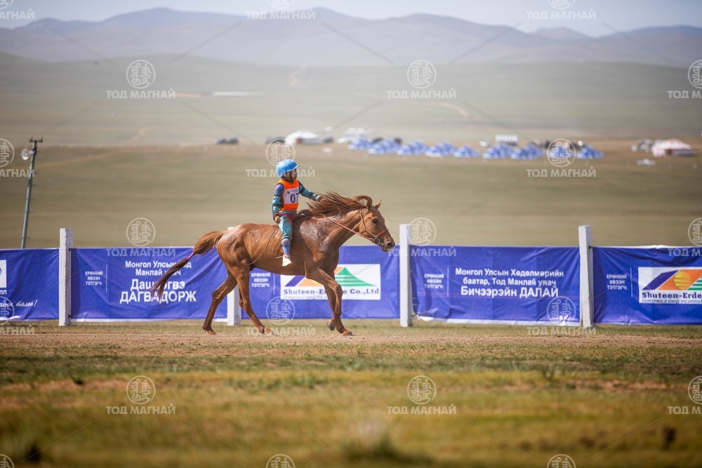8. Сэлэнгэ аймгийн Баянгол сумын уугуул МУ-ын Алдарт уяач Т.Төрмөнхийн хонгор зээрд. Уяа сойлгыг аймгийн Алдарт уяач Б.Бямбадорж. Уралдаанч 11 настай Д.Дагва-Очир.